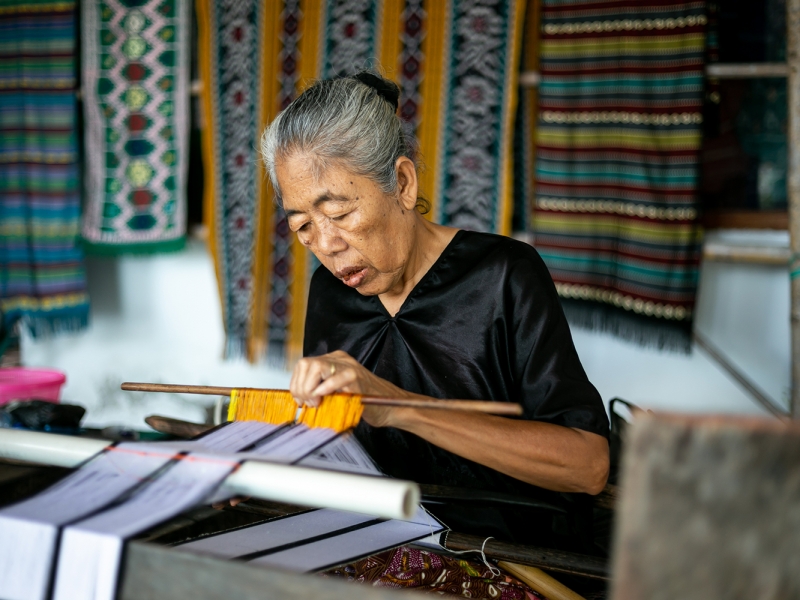 • La route se poursuit vers Sukarara, village de tisserandes renommé, où les femmes perpétuent l’art du tissage sur métier à bras. Vous assistez à une démonstration de leur travail délicat et découvrez les motifs typiques qui ornent les tenues traditionnelles de Lombok.