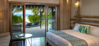 • 17 Sand Villas (66 m²) : vous profiterez d'une chambre confortable, d'un petit salon raffiné et d'un solarium dans ces villas. La terrasse privative sur pilotis vous permettra d'admirer votre environnement tout au long de votre séjour, avec un accès privilégié à la plage.